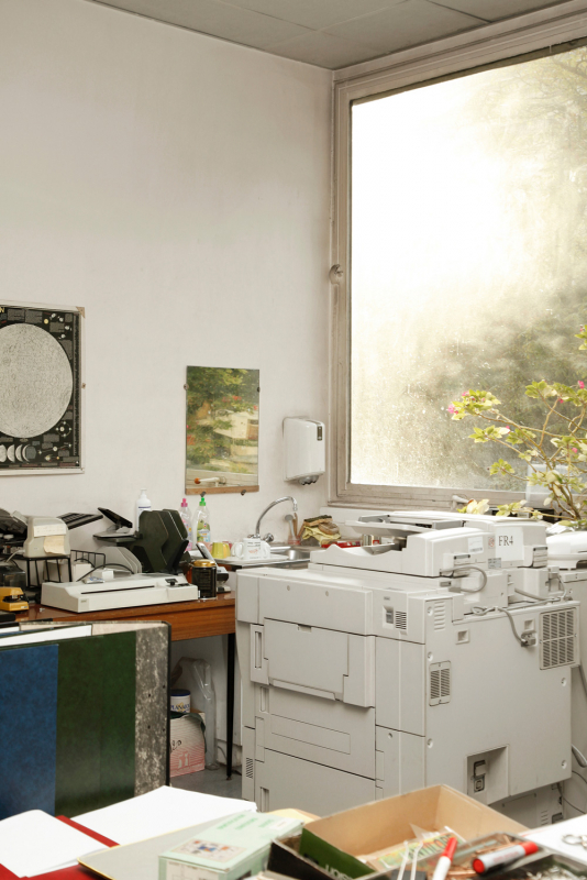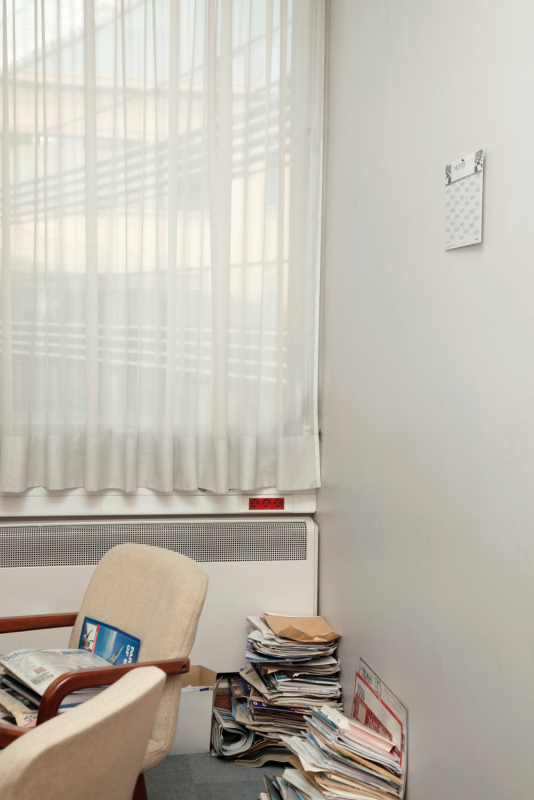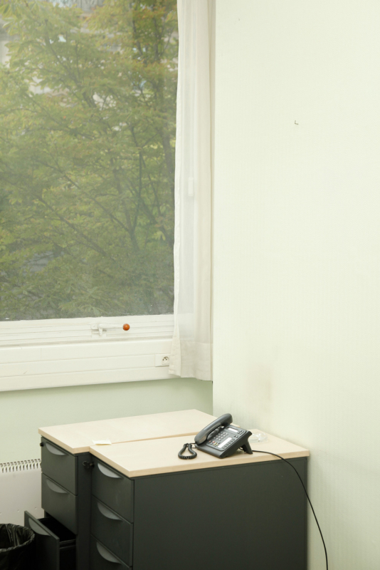 J’ai pris le parti de me concentrer moins sur la singularité manifeste du lieu (accès sécurisé, salles de conférences) et plus sur son occupation. C’est-à-dire, à la manière d’un archéologue, de fouiller dans le visible de cette désertion. Par là même, de regarder comment ces personnes parties avaient pu résister à la pesanteur du lieu, comment elles étaient parvenues, malgré tout le contexte calfeutré et ultra-sécurisé de cet espace lié à la défense, à apporter avec elles, sur leur lieu de travail, une forme de banalité, de poussière. Entre l’aspect exceptionnel du lieu et finalement sa grande banalité, cette tension a suscité mon intérêt dans ce qu’il laissait à voir une fois destitué de ses fonctions. Je n’ai plus touché ensuite à ces images, au point de les oublier.